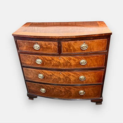 Good quality early 19th century mahogany crossbanded and inlaid bowfront chest of drawers with brass handles.