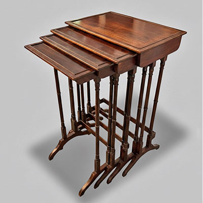 Early 19th Century rosewood nest of four tables on elegant ring turned legs.