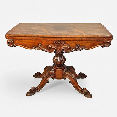 Fine early Victorian rosewood card table on carved cabriole legs.