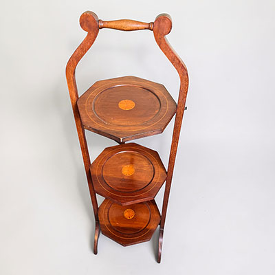 Good quality Edwardian mahogany and satinwood inlaid folding cake stand.