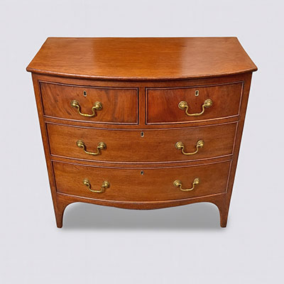 Small early 19th century mahogany bowfront chest of drawers with brass handles.